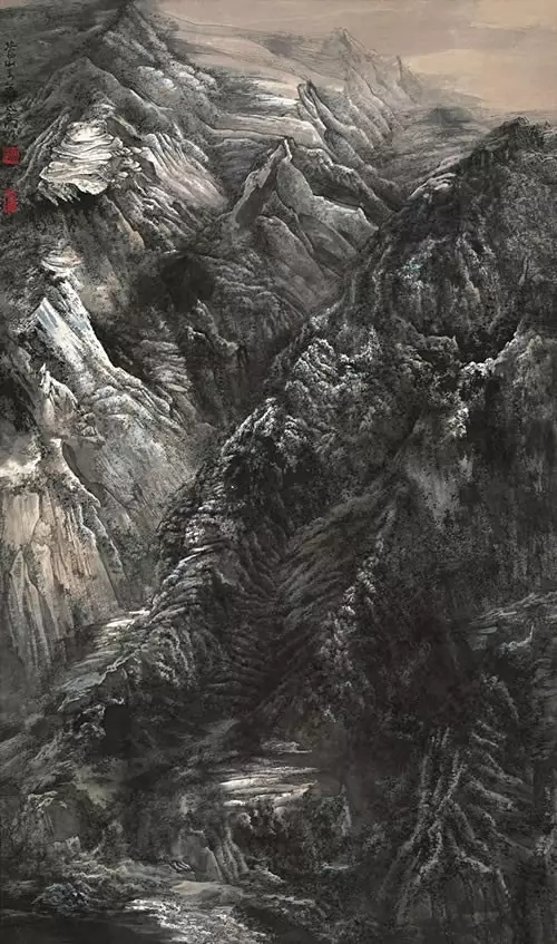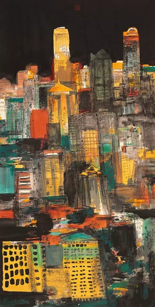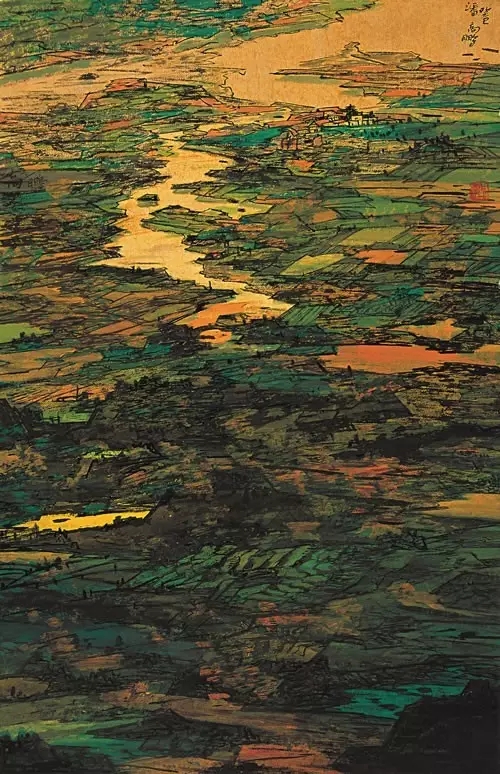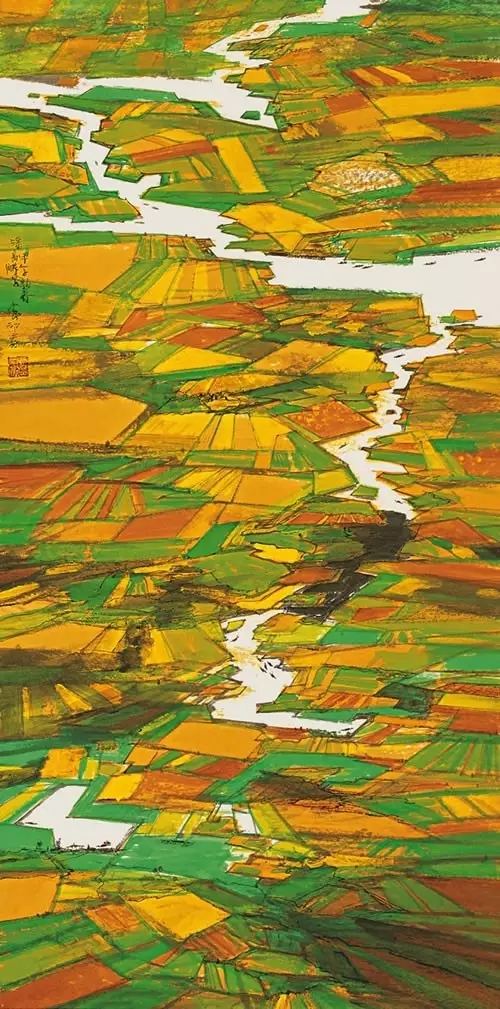 潘高鹏先生是40后出生的人,早年就读于南京艺术学院,文革前后毕业,此后主要在《新华日报》从事编辑和美术创作,深受新金陵画派影响,所以形成了潘高鹏先生今天的绘画风貌,在潘高鹏作品里面所读到的信息非常多。比如说,他的构图方式是俯瞰式、全景式。第二方面,我们在潘高鹏作品里还可以看到当时视觉形式感,也就是现代主义开始,对那代人都有影响。潘高鹏的作品试图把现代主义一些形式因素运用到其中,与新金陵画派固有的好的传统,达到一种对立统一。这是潘高鹏延续或者承传新金陵画派,深入生活,不断到生活中开采山水画新的富矿的过程中在艺术语言上的提炼和求索。总之,我觉得潘高鹏给我们提供了一个很好的研究20世纪山水画,尤其新时期以来山水画的很好的个案。