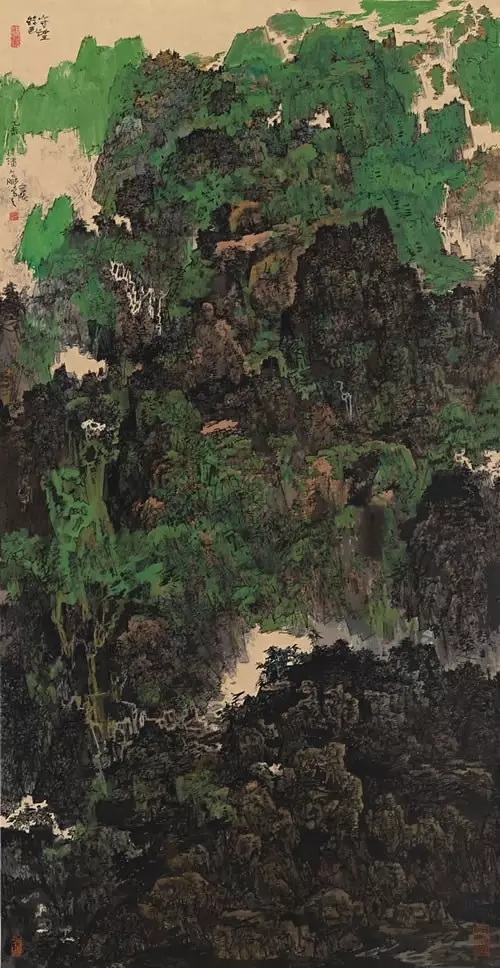 最早接到潘高鹏先生研讨会邀请的时候,我想一定是非常老的面貌。进到展厅里,我大吃一惊!我觉得是耳目一新的感觉。一个是对传统笔墨的研究。对于这种传统笔墨的气韵和精神表达,已经完全达到了非常高的境界。潘先生给我的启发更大。他用现代的形式、对形式语言的探索,特别是色彩。他的很多色彩运用得非常大胆。一些强烈的颜色并置在一起的时候,和线条一起对画面形成了非常强烈的构成效果,这就使画面具有很强的现代感。这个更具有现代感和传统语言并置。在过去传统方式里可能很难看到这种大的全景式的鸟瞰效果。传统笔墨、现代形式,这些最终要传达的是当代精神,这是最重要的。作品《守望绿色》表达了他关注了比如当代社会对自然环境的保护等等一些大的命题。这种探索,对传统笔墨的深入探讨与研究,同时借鉴一部分现代形式来表达一种当代精神,是山水画创作非常重要的一个发展道路。艺术它够不够当代性,恰恰是它的精神和表达的内容是否契合这个时代的精神,能否感动当代的人,如果感动我们当代人,它就是非常优秀的作品。从这个意义上来讲,潘先生的作品在传统笔墨、现代形式和当代精神三个方面都做得非常好。
